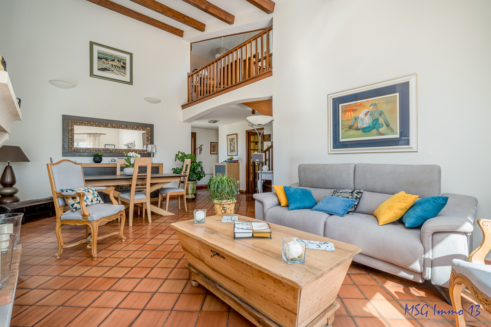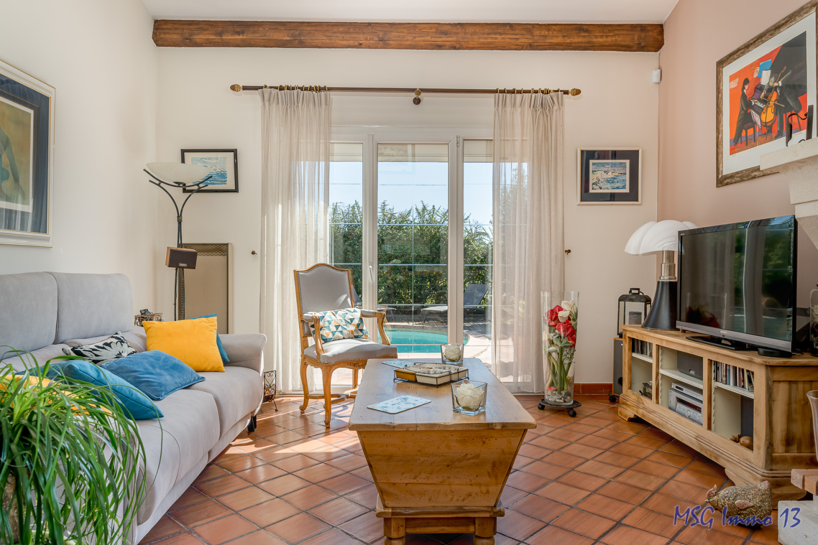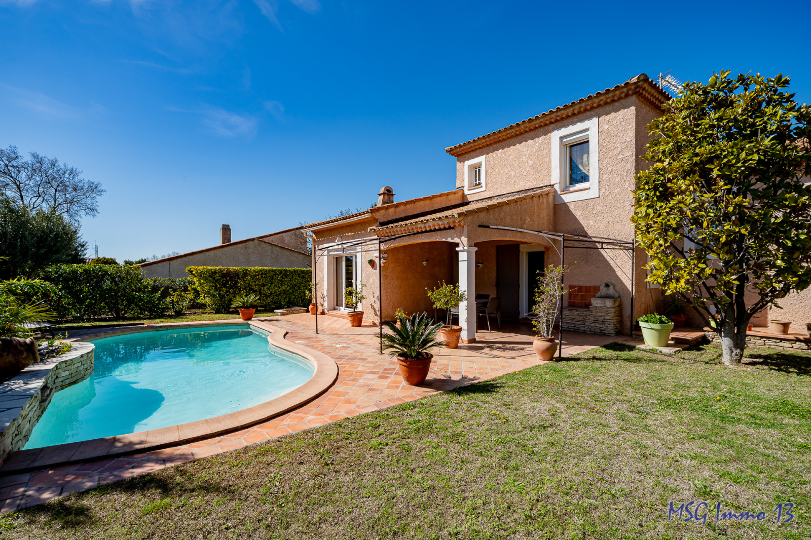 *** EXCLUSIVITE MSG Immo 13 ***** Superbe villa d'architecte T4/5 de 108m² env en TBE + garage 20m² + cave/atelier sur une parcelle de 610m² sans vis à vis, exposée SUD avec garage et piscine. Située en bout de lotissement, au calme absolu sur Château Gombert. Composée d'un porche fermé, hall d'entrée donnant sur le grand séjour de 34m² avec très belle hauteur sous plafond avec cheminée et climatisation réversible, cuisine équipée de 10m² avec cellier de 3.5m², wc bas. Quelques marches (quasi de plain pied !) donnent accès à la 1ère partie nuit en demi-étage composée de 2 chambres avec placards (10.5 / 11m²) et une sdb avec douche et baignoire. Le 1er étage composé d'une partie bureau de 10m² env et d'une suite parentale avec chambre de 11m² et sa sde avec wc. Une grand garage avec ouverture automatisée de 20m² est accessible directement par la maison et donne accès à une belle cave / atelier. La parcelle permet de garer plusieurs véhicules. Le jardin avec arrosage automatique est agrémenté d'une jolie piscine Diffazur créée en 2000 et d'une cuisine d'été très agréable !! TF : 2900€. Charges ASL : 180€/an. Un bien rare à la vente...