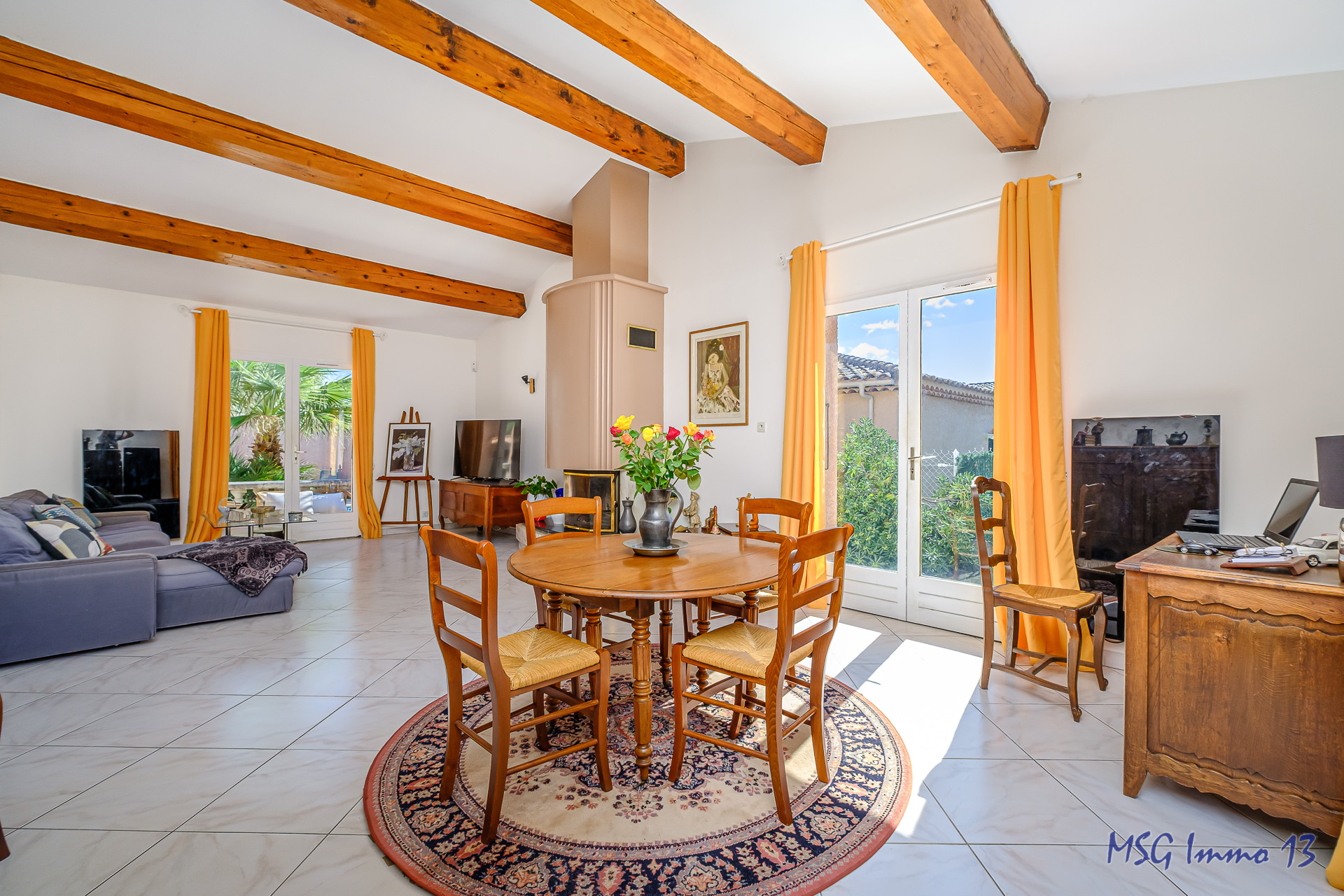 *** UNIQUEMENT chez MSG Immo 13 *** Dans un lotissement situé entre Saint-Mitre et Château-Gombert, au calme absolu, loin de la route mais proche de toutes les commodités ! Villa des années 1990 de 125m² (106m² + 19m² annexe : garage aménagé) sur une parcelle de 600m² avec nombreux parkings. Exposée Sud-Est. Venez profiter d'une maison familiale composée d'un hall, séjour de 36m² avec plafond cathédrale, cuisine séparée donnant sur cellier, et chambre + wc + sdb en RDC !! Etage avec 2 chambres, sde et wc séparé. Garage indépendant de 19m² aménagé pour devenir votre bureau/ chambre/ studio / atelier .... Chauff électrique + climatisation + cheminée. DV bois. Piscine spacieuse avec cuisine d'été. Quelques légers rafraîchissements mais cadre très agréable ! Panneaux solaires avec revente à EDF. TF : 3102€. Charges : 60€/mois.