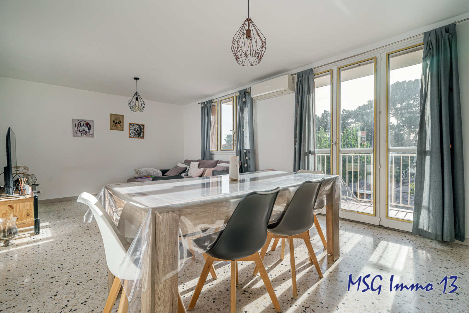 Très grand T2 de 59m² situé au 1er étage sur 4 sans ascenseur dans la résidence Les Prairies située sur St Mitre 13013 Marseille.Proche de toutes les commodités à pied !! Vendu avec place de parking privative devant l'entrée du bâtiment + cave spacieuse. Appt refait à neuf en 2017 : électricité, climatisation, cuisine, sde... Très lumineux, expo Sud/Oues côté séjour. Traversant !! Hall avec porte blindée, séjour de 25m² avc balcon de 6m², cuisine séparée équipée de 7.70m² avec loggia/buanerie, chambre de 14.7m² avec grand placard, wc séparé et sde avec grande douche ! Charges faibles : 83€/mois. Résidence gardée et façades refaites il y a quelques années. Rare !!