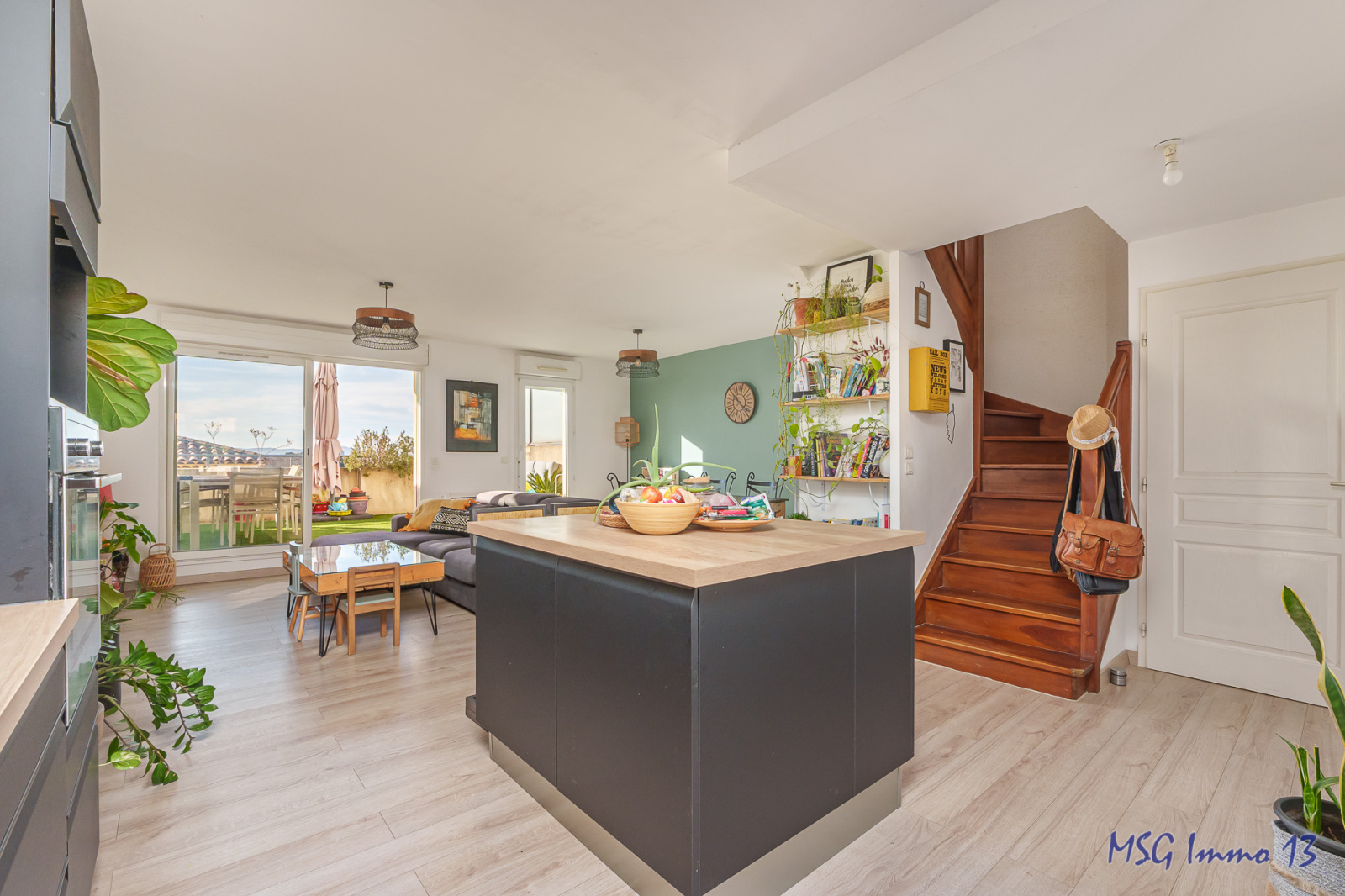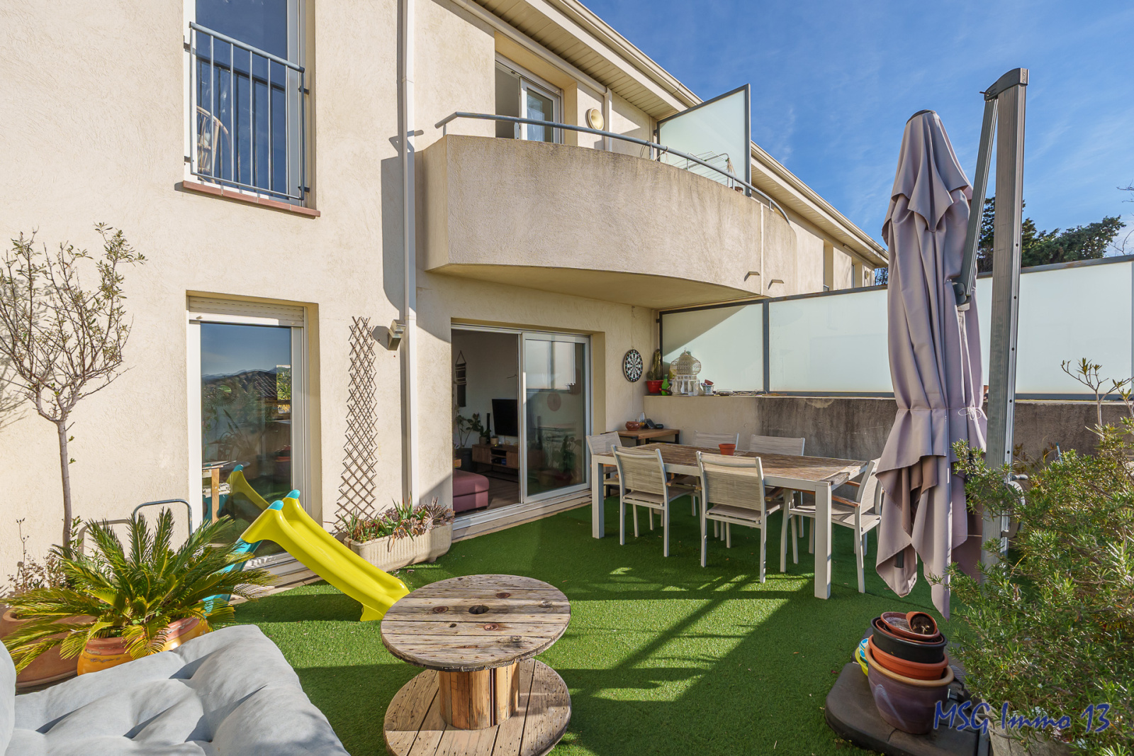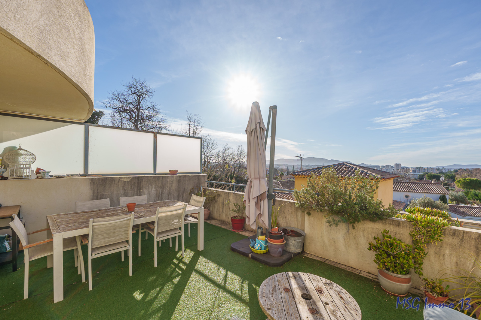 *** EXCLUSIVITE MSG Immo 13 *** SOUS COMPROMIS -----Rarissime Duplex de 91m² hab "comme une maison" en DERNIER étage (étage 1 et étage 2) d'un petit immeuble de seulement 6 appartements. Vendu avec un grand garage (5.76 * 2.90m = 17m²) et une place de parking privative. Petit immeuble niché au milieu de villas dans une résidence de très bon standing entre St Mitre et Château Gombert. Calme ABSOLU et ambiance familiale. Exposition SUD. Grande pièce de vie avec cuisine toute équipée de 42.5m², donnant sur une terrasse de 25m², placard et wc. etage composé de 3 chambres avec placards (11 / 12.5 / 10m²), salle d'eau + salle de bain et second wc. Charges très faibles : 55€/mois !! TF : 2224€. Vidéo de présentation de ce bien disponible !!