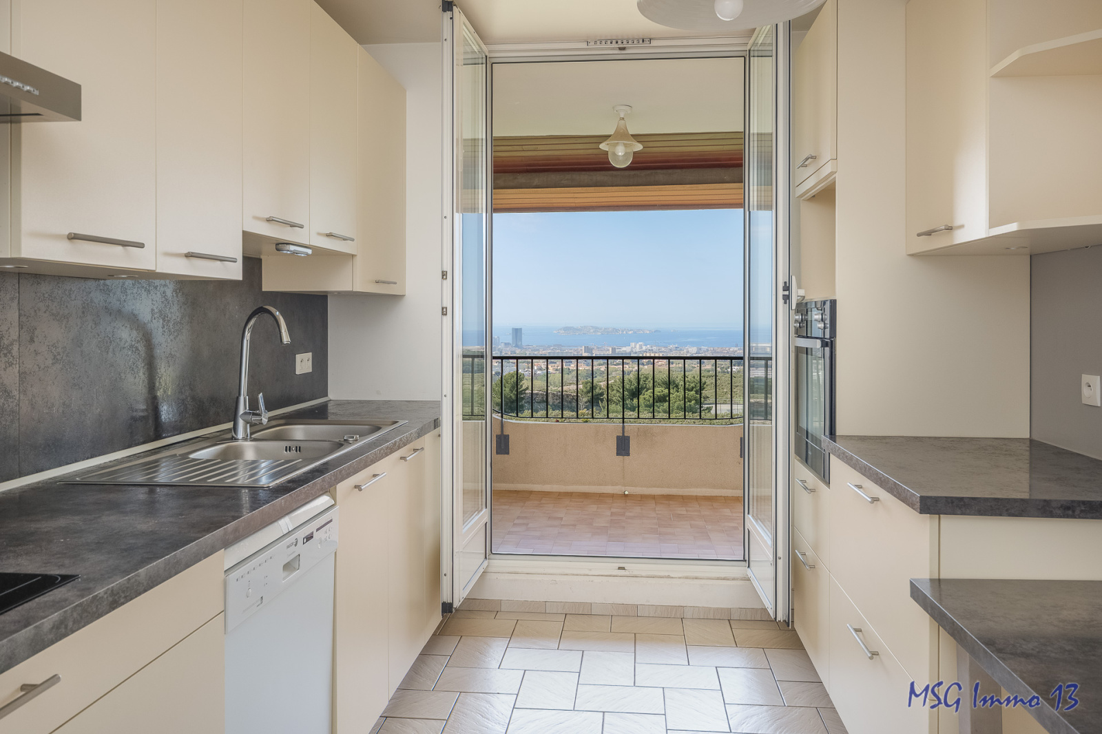*** EXCLUSIVITE MSG Immo 13 *** Rarissime. --- SOUS COMPROMIS ---- Situé rue Missiri Batarelle haute 13013 Marseille. T4 en TBE situé au 2ème étage sur 2 (dernier étage) avec VUE MER superbe, AUCUN vis à vis et CALME Absolu !! Dans environnement familial très agréable : Appartement de 84m² + balcon 3m² + terrasse 6m² + cave de 10m², parking collectif et POSSIBILITE de GARAGE en sus (+20.000€). Plan en photo : hall avec placard, séjour donnant accès au balcon et à la terrasse, cusine séparée, couloir, cellier, 3 chambres, dressing, wc et sdb. Porte blindée, chaudière à gaz neuve, double vitrage, cuisine équipée. Charges 120€/mois (hors garage). TF 1500€ (hors garage).
