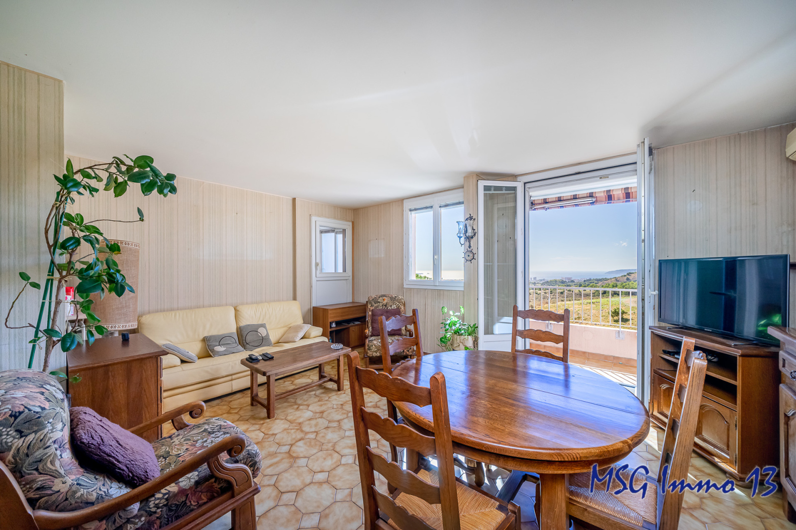 *** EXCLUSIVITE MSG Immo 13 *** ---- SOUS COMPROMIS---- Situé sur le secteur privilégié de la Batarelle Haute 13014 limite 13013 : VUE MER !!! ---- SOUS OFFRE ----Vrai T5 de 94m² à rénover + cave (+ poss garage fermé +20.000€). Situé au 1er étage dans un bâtiment en limite de zone verte, donnant sur la colline et la MER. Hall avec placard, séjour donnant sur balcon, cuisine séparée donnant sur terrasse fermée et coin nuit composé d'un hall, 2 sde, wc, et 4 chambres dont une avec balcon et dressing. Double vitrage partout, chaudière récente, porte blindée. Clim séjour. Exposé Est Ouest, très lumineux et sans vis à vis ! Rare et très beau potentiel à rénover à son goût !