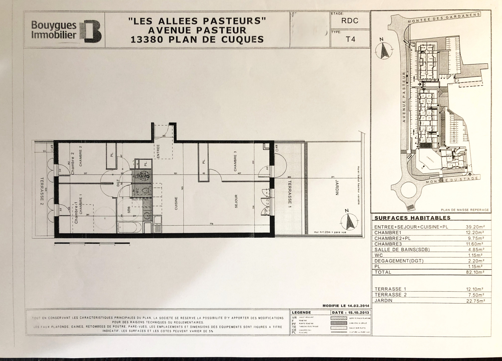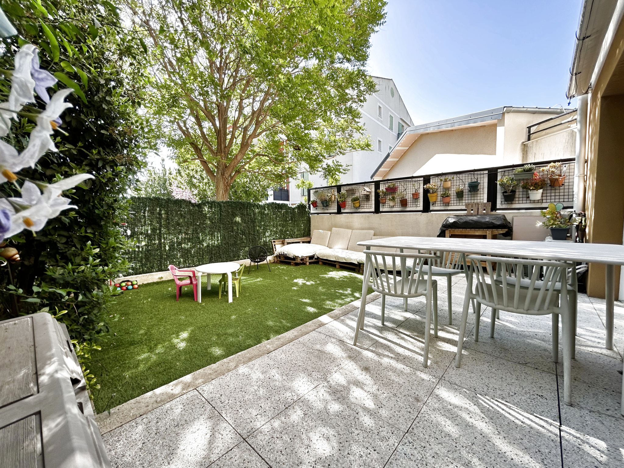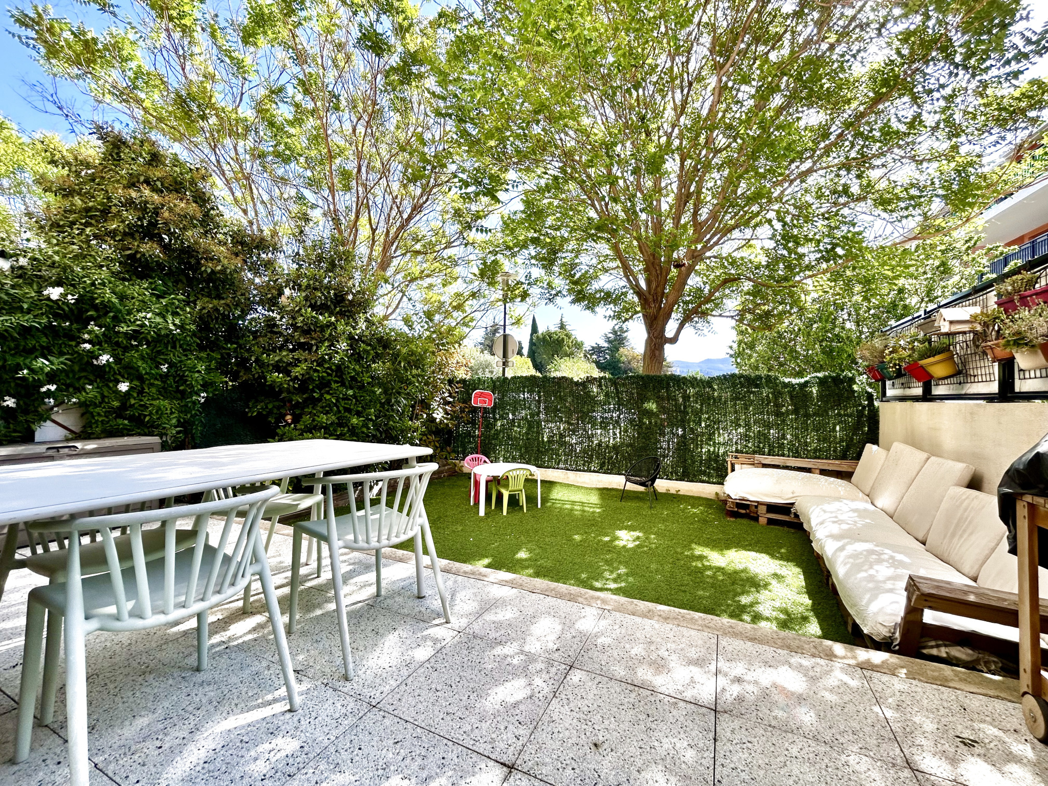 *** Uniquement chez MSG Immo 13 *** Très beau T4 en rez de jardin aux Allées Pasteur 40 avenue Pasteur 13380 Plan de Cuques. Proche toutes commodités, médecins, pharmacie, parc avec parcours de santé. Type 4 traversant de 82m² avec joli jardin & terrasse de 35m² au calme absolu, avec grand store banne, niché à l'intérieur de la résidence. Une seconde terrasse est également présente coté chambres. Une place de parking + un grand garage de 15.7m² avec mezzanine !! Climatisation réversible partout, ballon d'eau thermodynamique. DPE A ! Charges 166€/mois. TF : 1273€. Plan en photos. Rarissime !