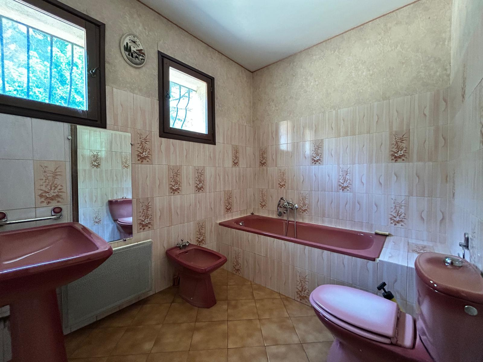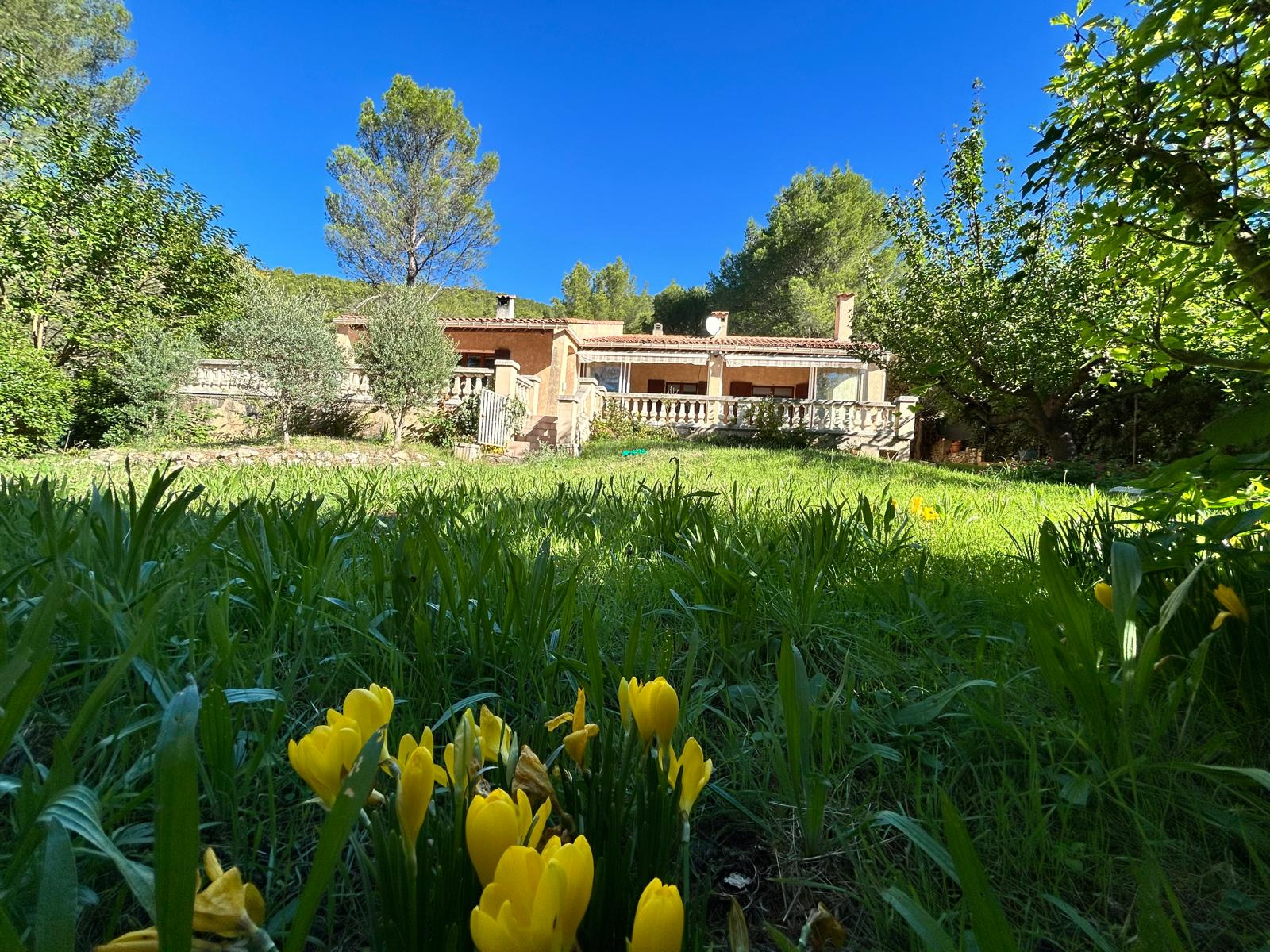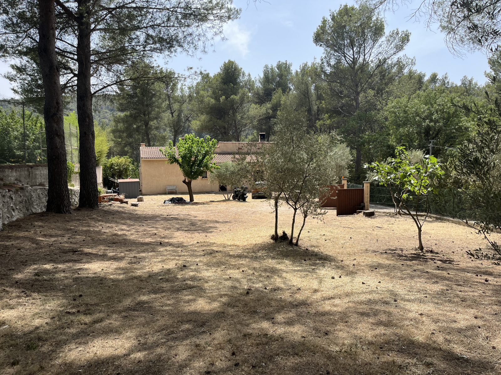 *** Exclusivité MSG Immo 13 *** Gémenos secteur COULIN -- Villa individuelle construite en 1985 de 113m² de type 4 + véranda 28m² + terrasse 64m² sur une parcelle très arborée de 3900m² exposée SUD. Entièrement de plain pied (plan en photo), composée d'un hall, séjour de 42m², cuisine spacieuse, 3 chambres, deux sdb avec wc. Pas de vis à vis et jardin plat. Double vitrage bois, cheminée et climatisation dans le séjour. Fosse septique. Travaux de rafraîchissement mais un potentiel superbe ! TF 1263€.